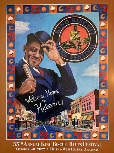 The King Biscuit Blues Festival decided to use my "Welcome Home to Helena" painting again for their 2022 poster. They changed the border color and dates to reflect the new year and it looked great. I signed both versions at the Delta Cultural Center during the festival!