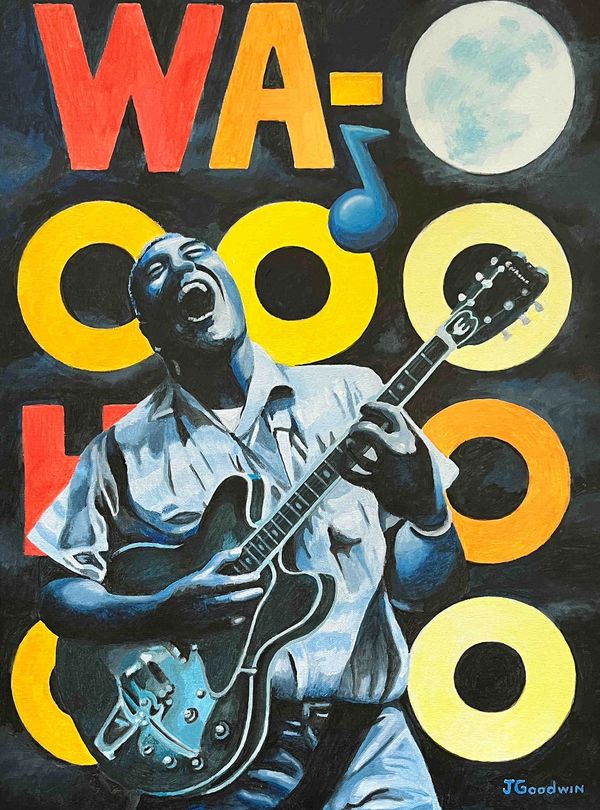 One of my absolute favorite blusmen of all time - the great Howlin' Wolf! "If you hear me howlin' . . . calling' on my darlin' . . . " Wa-oooo Hooooo! This one will be added to my Blues Greeting Card series and details about the painting can be found in the Blues Gallery.