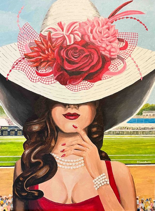 Flowered hats and beautiful women, it must be The Run For The Roses - it must be Kentucky Derby Day! This painting was featured in the May 2025 issue of the contemporary art magazine "Artistonish" and in HMVC Gallery New York's "Flower Waltz "exhibition, which was shown on a jumbotron in Times Square in May! More info about it can be found in my Miscellaneous Gallery.