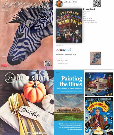 "Dreamland" was featured in the September 2024 issue of the monthly international art magazine Artistonish. An article about my art in general, "Painting The Blues", was featured in the November issue of the Fort Smith area's Do South magazine.