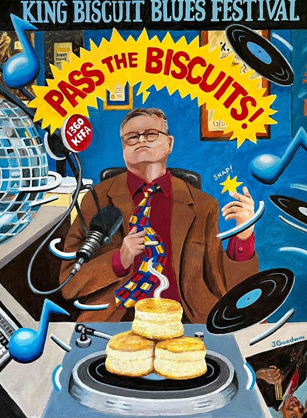 As a long-time blues fan and KBBF attendee, it was my great honor to be selected as the official 2021 King Biscuit Blues Festival Poster artist! Unfortunately the festival was postponed due to COVID 19, but posters, however, both signed for $25 and unsigned for $20 are still available at the KBBF office. They should be collector's items!