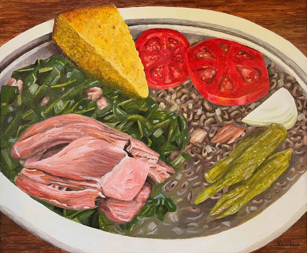 The Soul Food Plate - 20 X 24, that classic home-cooked southern meal that everybody loves! The original is available for $650 and signed giclees are available for $60.